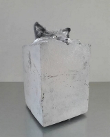 - " Prélèvements P.B.1.Renard " / Béton, taxidermie / 20 x 20 x 35 cm / 2018.